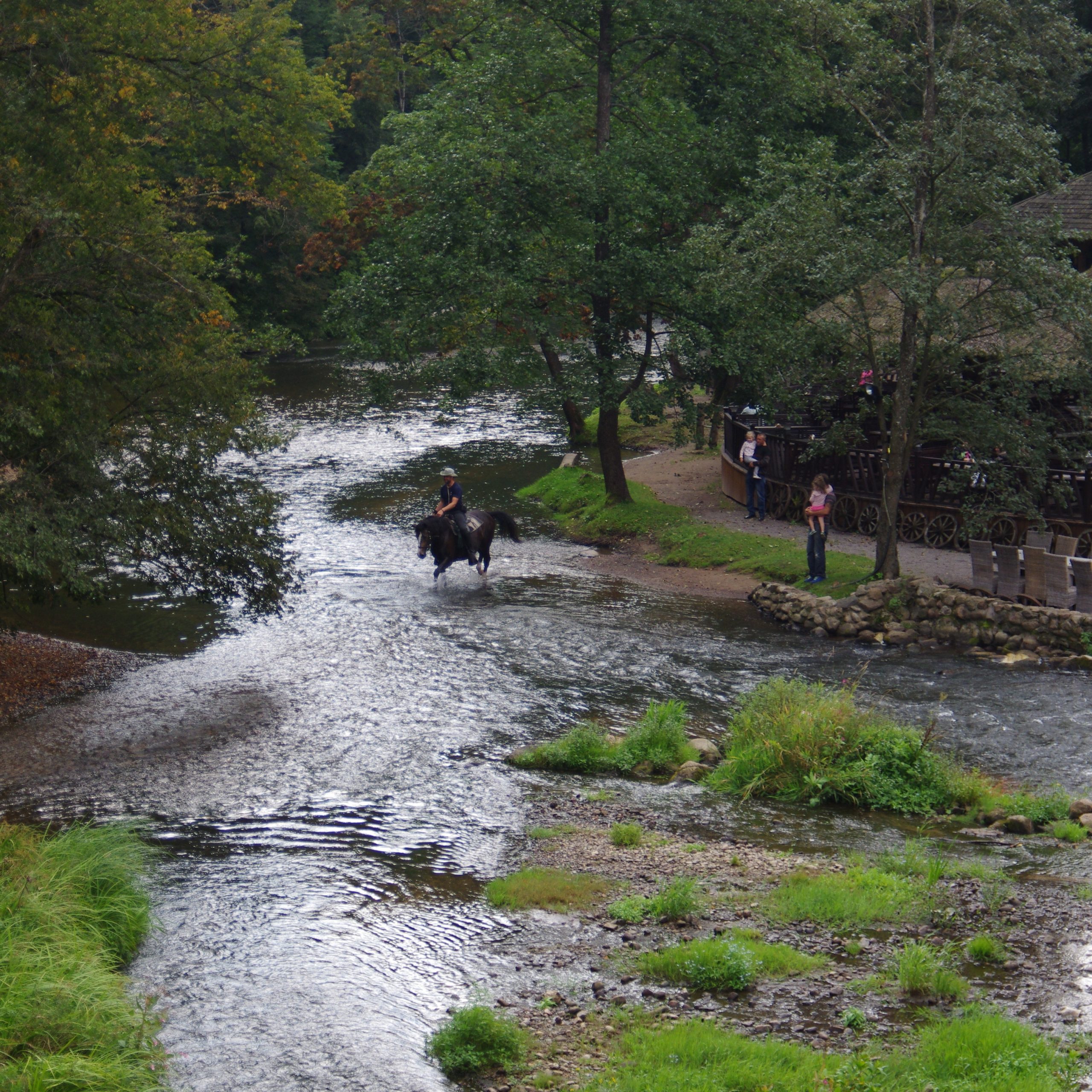 Cycling along the Vilnia River, the urban scenery gradually gives way to forests as we enter Pavilniai Regional Park — one of the most scenic natural areas around Vilnius. We stop at the historic Belmontas former water mill and explore the surrounding park and forest trails.